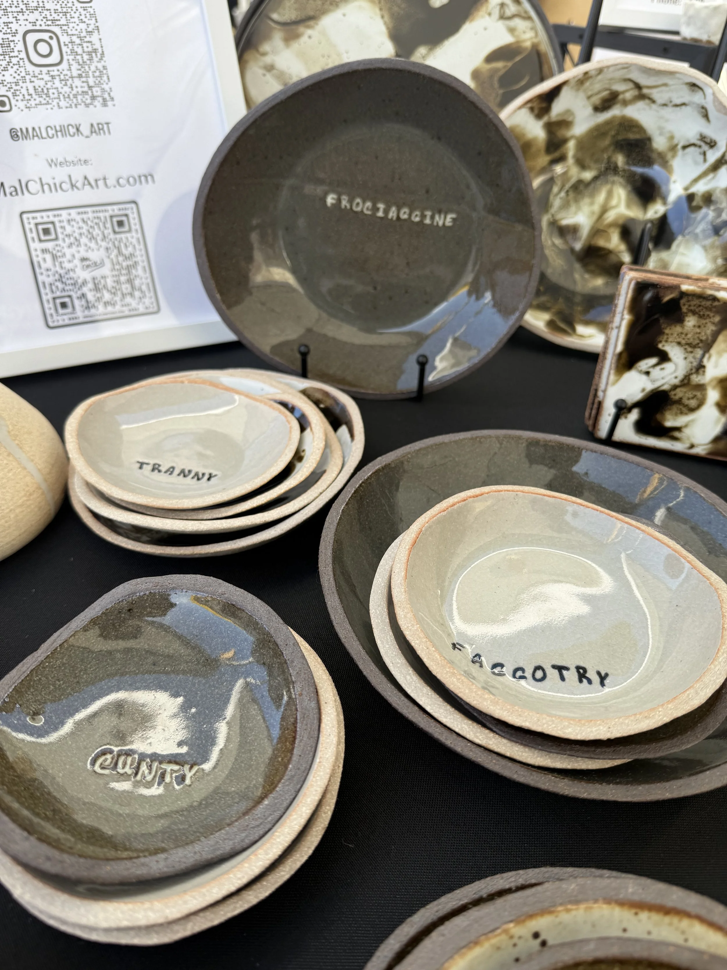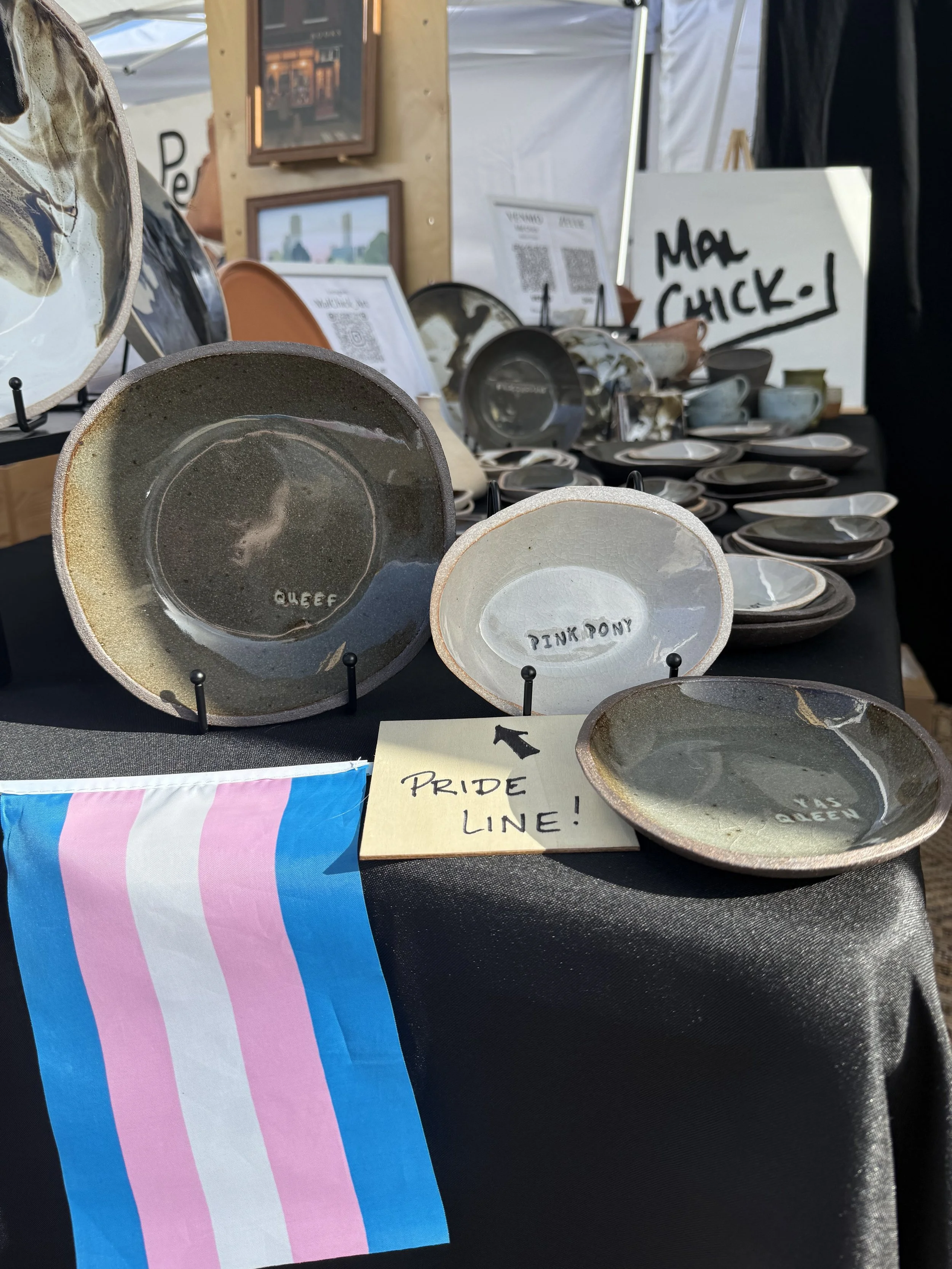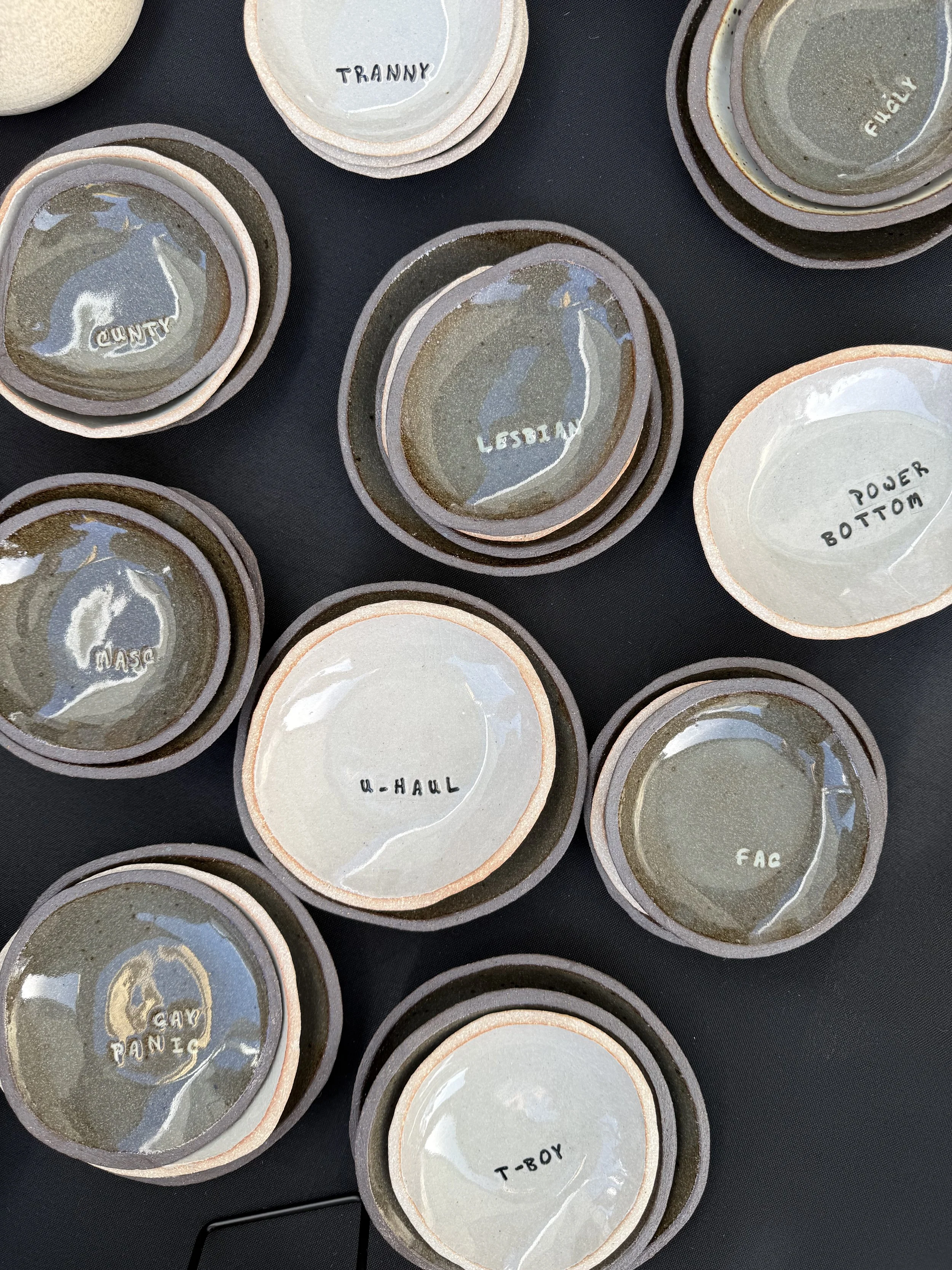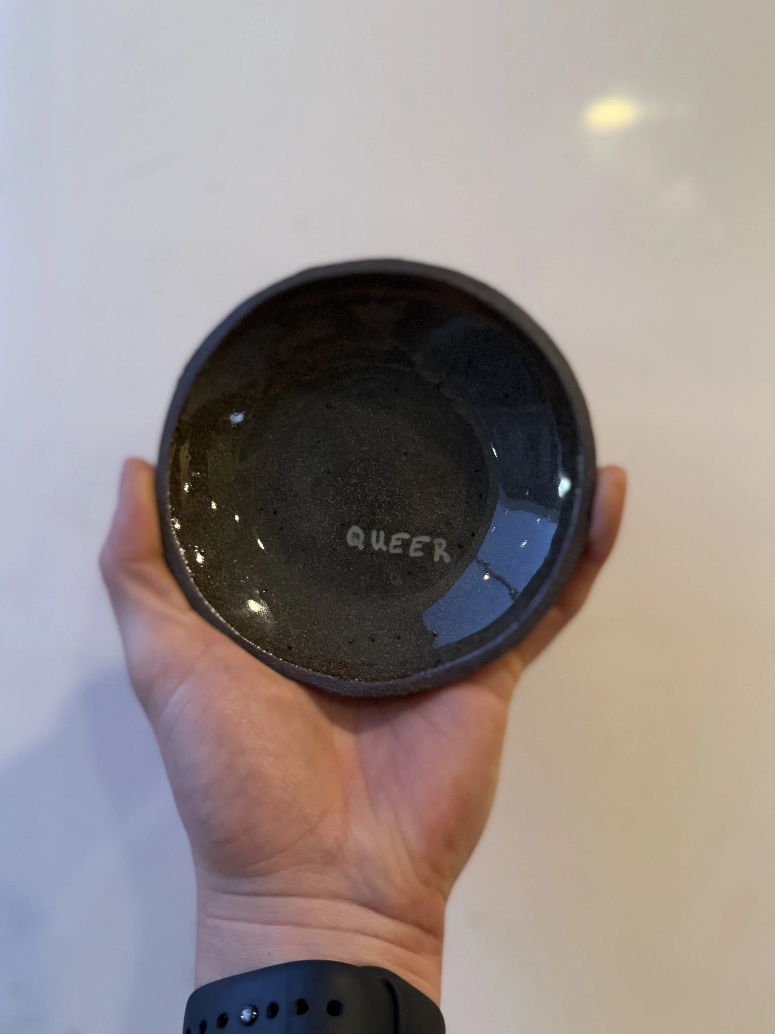 Pride to me is multifaceted. It is both elegant and humorous. Historic and playful. Wholesome and crass. I have taken part in my fair share of gaudy pride decorating, but sometimes it just really isn’t the vibe. So I made these subtle and cheeky dishes for those who want to broadcast their pride throughout the year without messing with your home aesthetic.